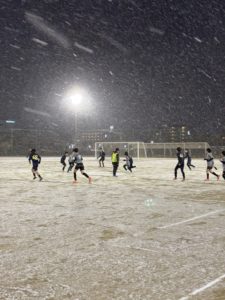 練習試合:岡山では珍しい雪の中・・・
